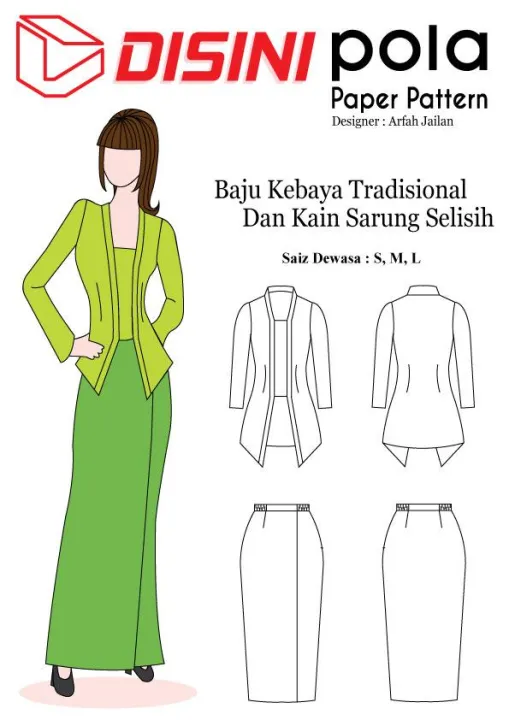 Pola Pakaian Baju Kebaya Tradisional Dan Kain Sarung Selisih Sewing Pattern By Disini Designer Arfah Jailan Lazada