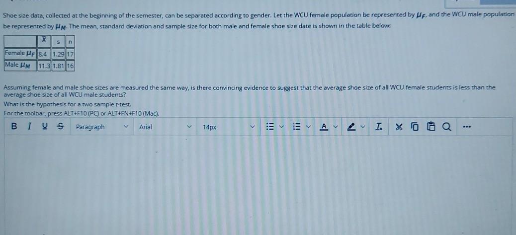 Solved Shoe Size Data Collected At The Beginning Of The Chegg Com